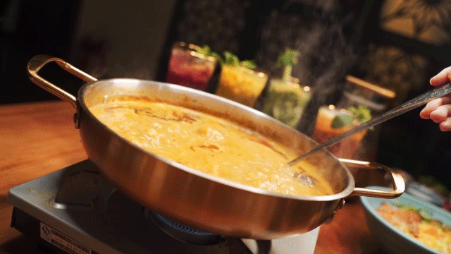 强哥力荐的咖喱海鲜火锅,是他一直引以为傲的资本。没有泰式咖喱的浓烈,也没有日式咖喱的甜腻,但吃完连牙缝都是淡淡香料味。