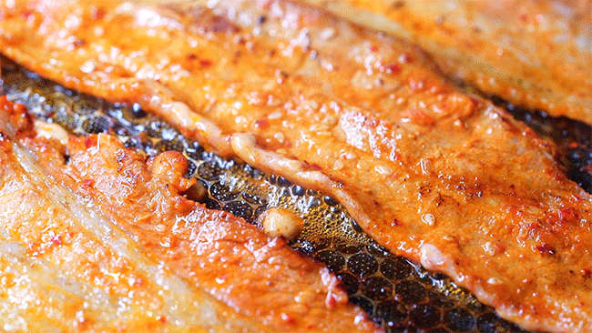 烤盘的滋滋声起,诱人香味便由此散发,这款经过腌制后的五花肉,本身就自带咸香可以不必另外蘸料,还能嚼到波波脆的脆骨!吃了它祝愿大家可以牛气冲天冲冲冲~
