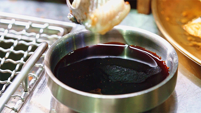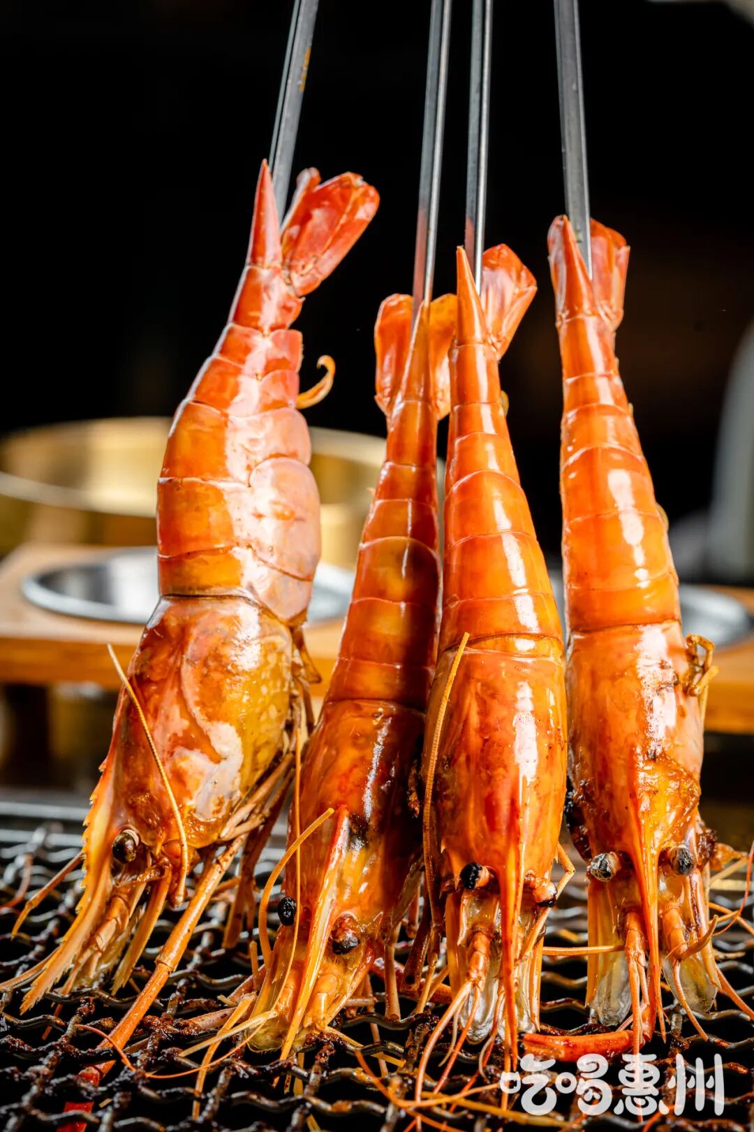 放在炭火上烤至整只虾金黄就可以了,饱满的整颗虾肉蘸上酸甜的酱汁,别说四只了,再来10只都不过分!
