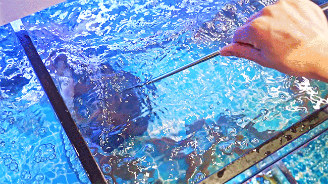 店里除了超长的开放式厨房,还可以看见养在玻璃池子里的海鲜,下单后现捞现杀,鳗鱼、大头虾活蹦乱跳的,看得见的新鲜。