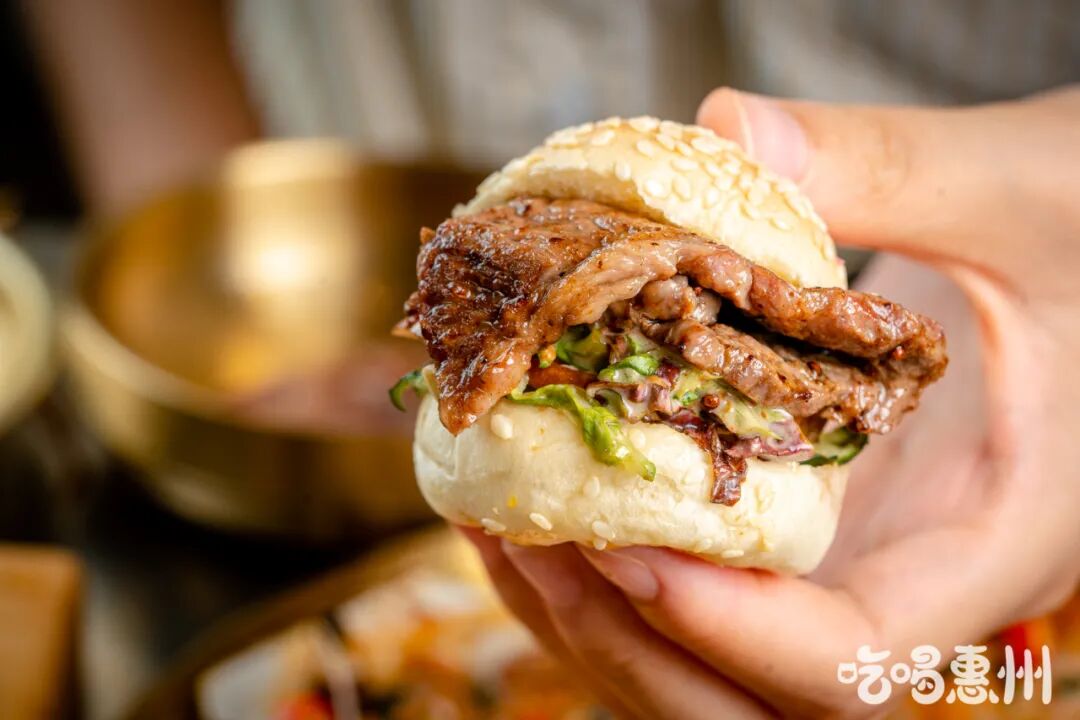 藏在烤肉店里的mini烤肉汉堡,将烟熏肠和烤好的肉包在汉堡里,夹蔬菜沙拉和其他酱料,一口吃一个也不过分~