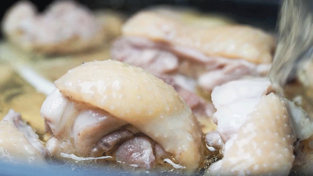 ②再吃新鲜的鸡肉,煮到9分钟的时候刚刚好,鸡肉光滑,鸡皮有弹性,吃起来就是两个字:滑嫩!