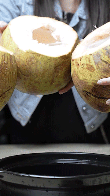 ①先喝它几碗椰子汤,清澄透亮的汤底清甜口感满分,偷偷告诉你们,这汤越喝后面越甜,像蜜一样甜。(来自一个喝了5碗汤的人的经验总结)