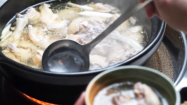 难怪这鸡肉一放进滚烫的椰子里,就那么让人有食欲。雪白鲜嫩的鸡肉像是在椰子汤里泡温泉,咕噜咕噜的吸收着椰子的香气。