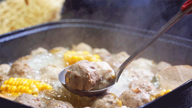 牛筋丸相对牛肉丸来说会显得更Q弹些,丸内会有类似蜂窝眼的大小气泡,吃的时候咯吱咯吱的声音萦绕耳畔。