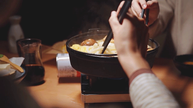 “当然是吃寿喜烧啦!两个人吃才够暖~”
