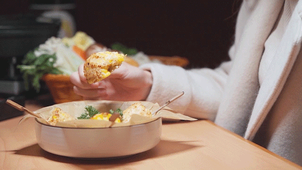 随着揭盖的手慢慢上提,芝士拔丝而起。蒸腾的热气中,先闻到了芝士的香气,夹起一块…连味道也惊艳!红薯松软香甜还带有芝士的咸香,吃一口就忘不了。