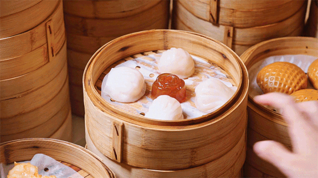 将叉烧切丁包裹在皮中,蒸熟后软绵适当,略微裂翻开来,可以看到里面透红的叉烧馅料,让人垂涎欲滴。