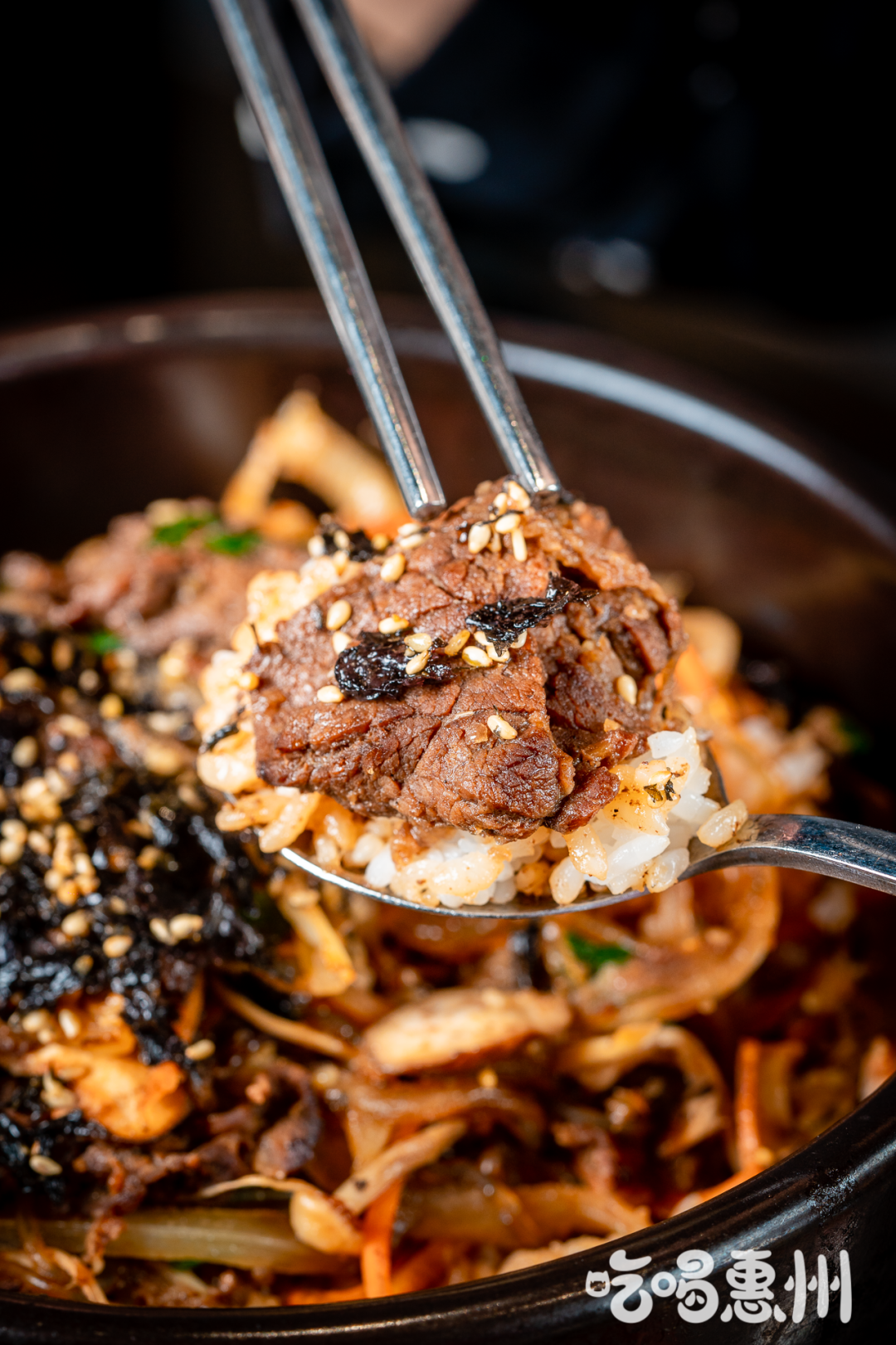 吃韩式烤肉当然少不了点一份牛肉石锅饭当主食,牛肉片、嫩香菇、洋葱条、海苔、芝麻…用料丰富份量很足,适合1-2人食。