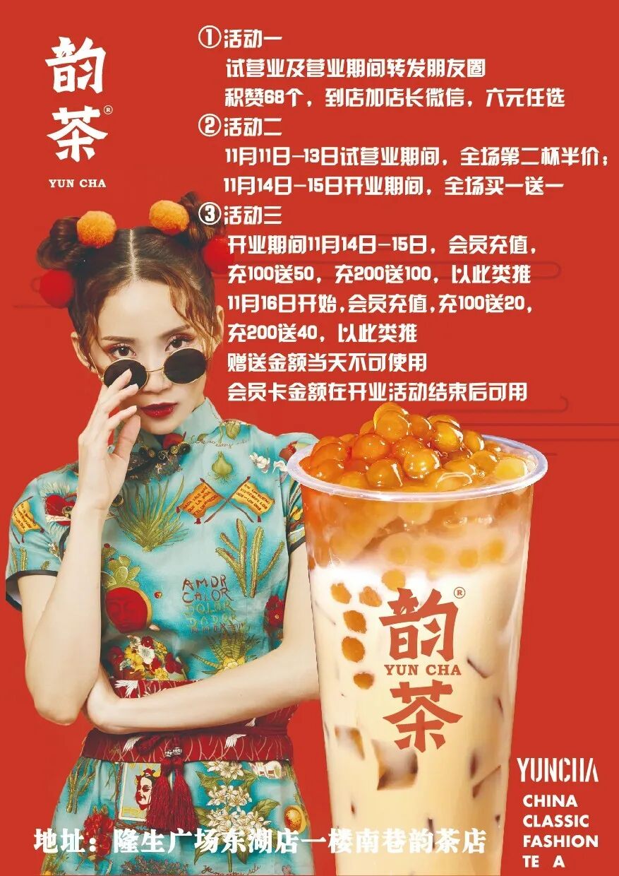 班尼路、艾小爪、韵茶来隆生啦!班尼路精选货品买一送一/第二件半价!艾小爪×想巷全场8折,精酿啤酒买1送1,会员还送5元无门槛券!韵茶试业期间第二杯半价,开业直接买一送一!