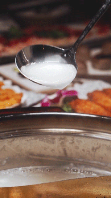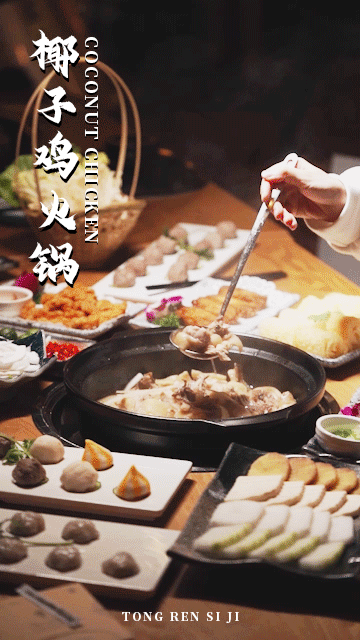 只用了三颗椰子做底的纯椰子水锅底,让人可以毫无顾虑地吃一口醇香的椰子鸡。先放竹笙马蹄,再下一只海南文昌鸡,静静等6分钟,一锅超暖胃的椰子鸡就可以开盖了~