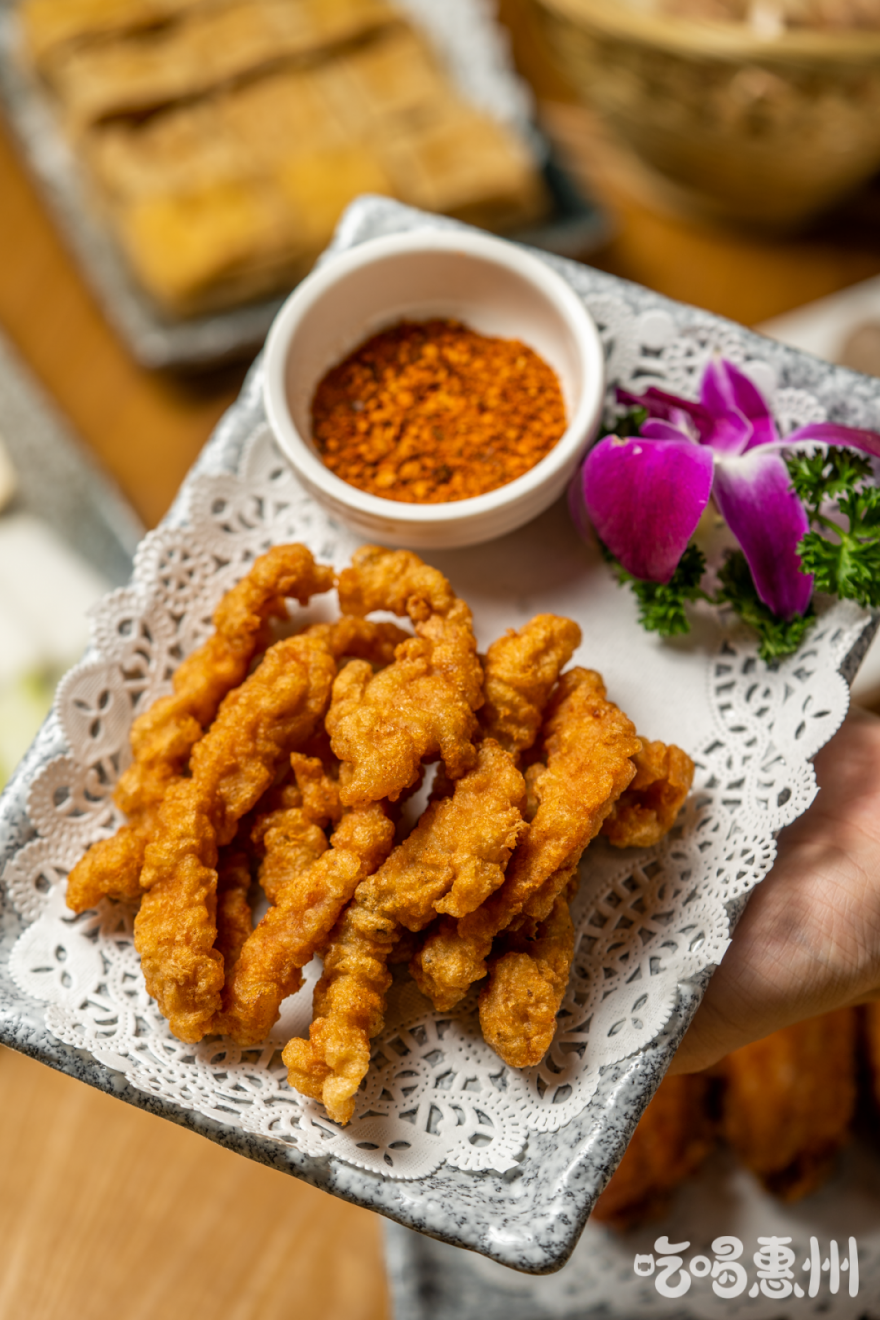 一份成功的酥肉应当是色泽金黄、干酥爽脆的。这份吃起来不仅外脆里嫩,内里还肥而不腻。
