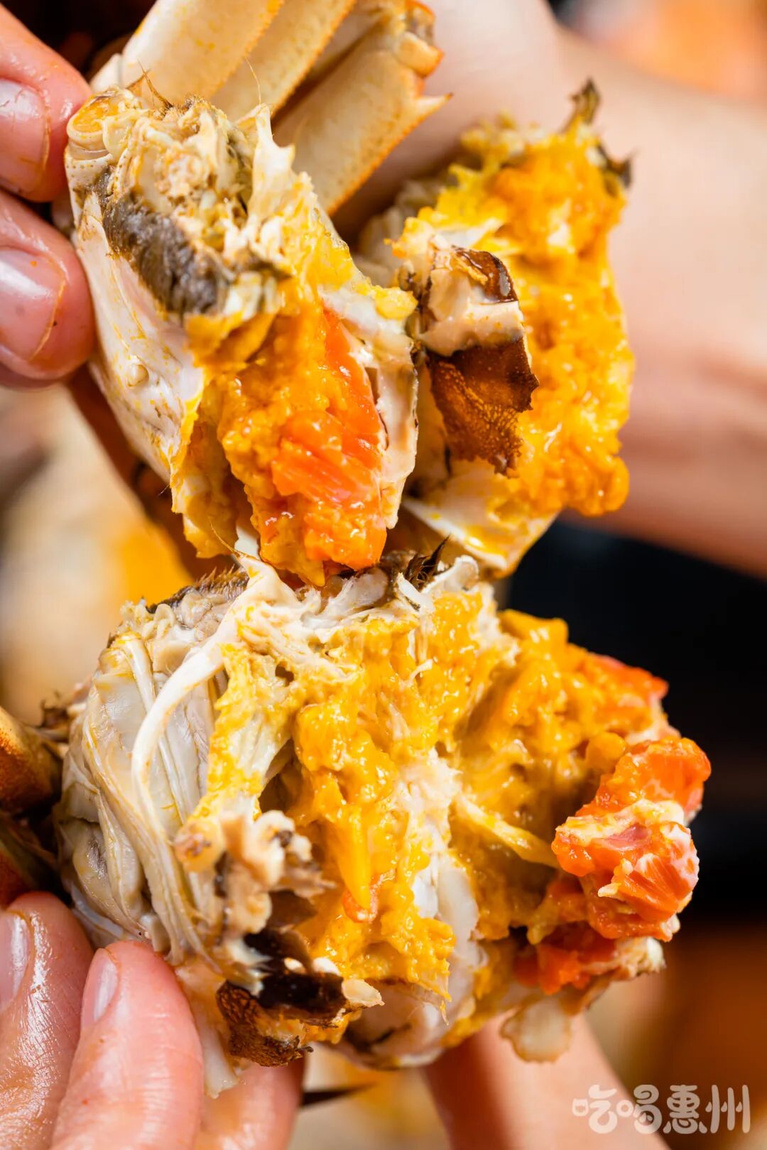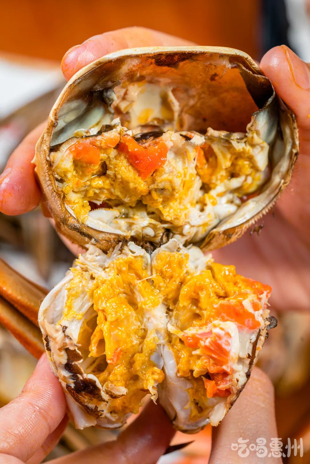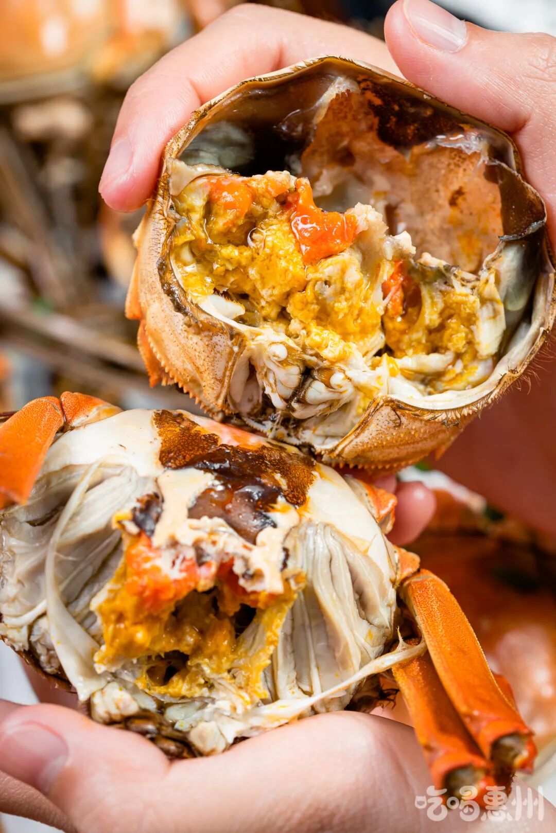 整只掰开,里面的蟹黄分分钟爆屏,流心的蟹膏像熔岩似的流淌,馋得我口水直流,这下谁也别拦着我囤秋膘!