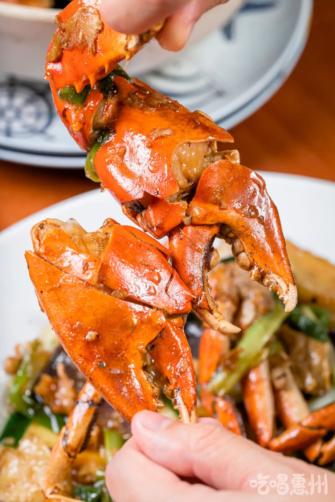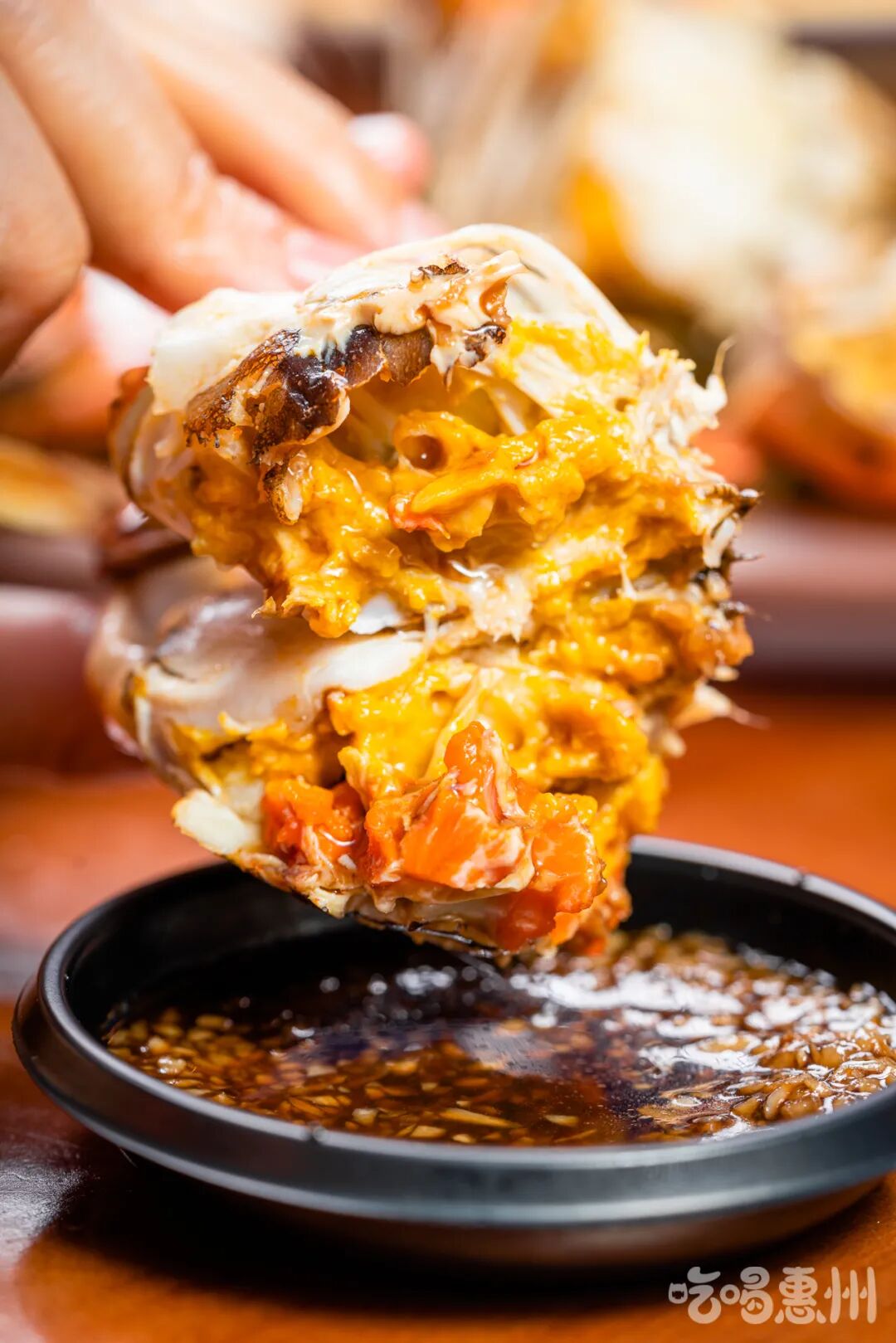 裹满酱汁的蟹肉,吃起来有一种独特的味道,让人忍不住大口嘬蟹,好吃到连手指边的脂香,都不想放过!