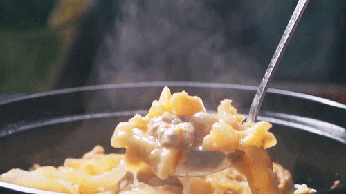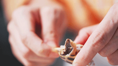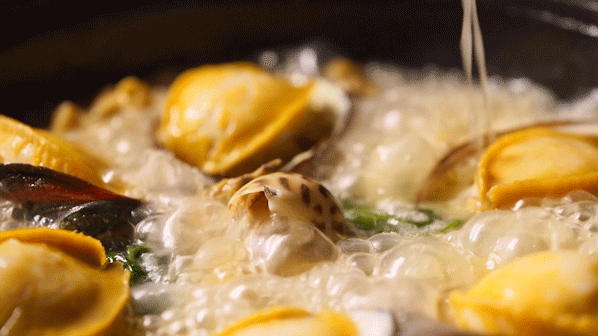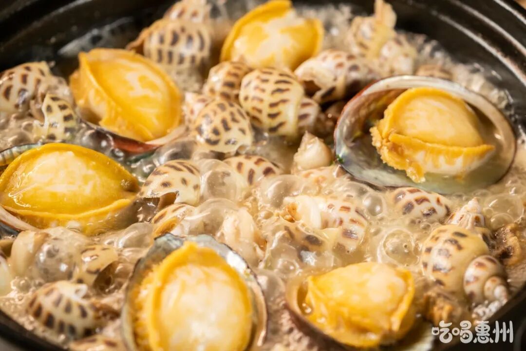 与汤锅不同的是,焖锅的酱汁色泽更加浓郁。被咸香酱汁浸透出酱金色的鲍鱼、花螺和鸡肉,在光下更显诱人。我还没尝,口水就先流了下来。