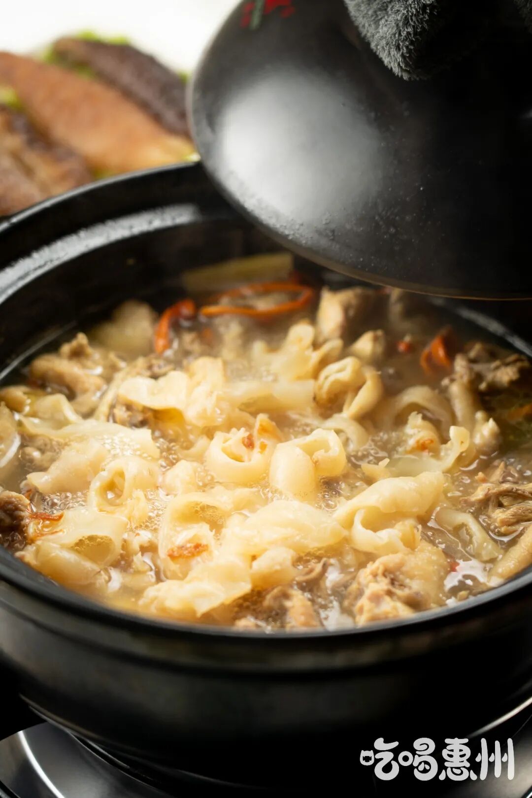 招牌花胶鸡煲,点单率同样高。花胶和鸡在煲里咕噜咕噜,直到胶质满溢,看着就超满足。