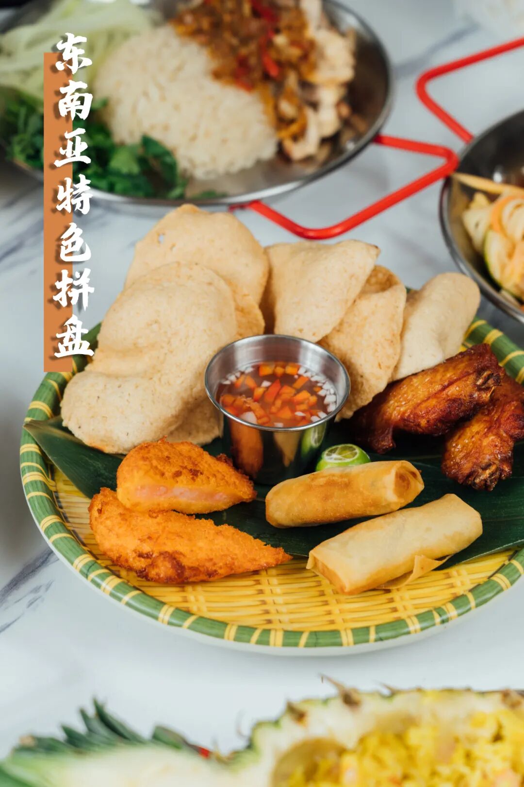 特色拼盘中有特调的泰式酸辣酱,虽然夏天的尾巴快要抓不住了,但咬一口蘸入酱内的小食,清爽得好似夏天的微风又回来了~