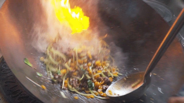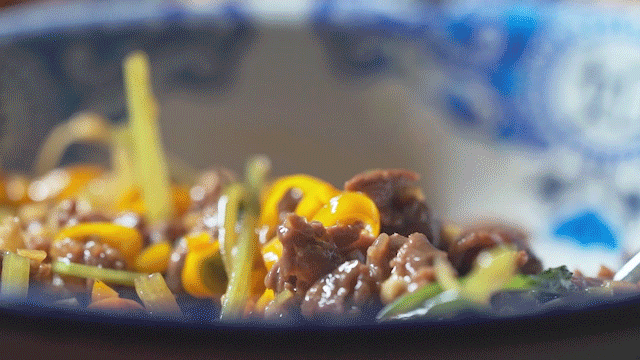 厨师强调,这道菜重在出菜速度,在大火里翻炒18秒必须出锅!这样才能保证牛肉的原汁原味和嫩滑。