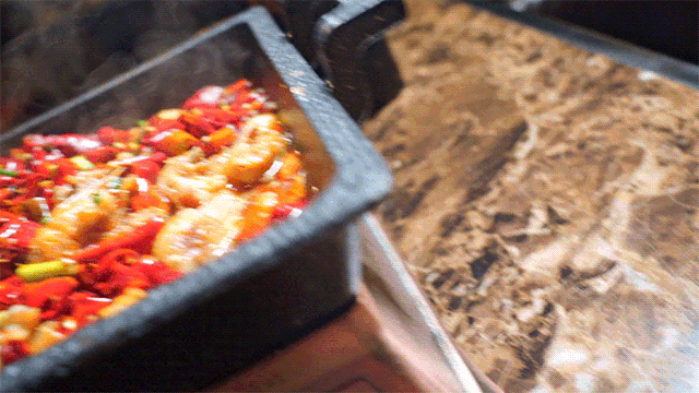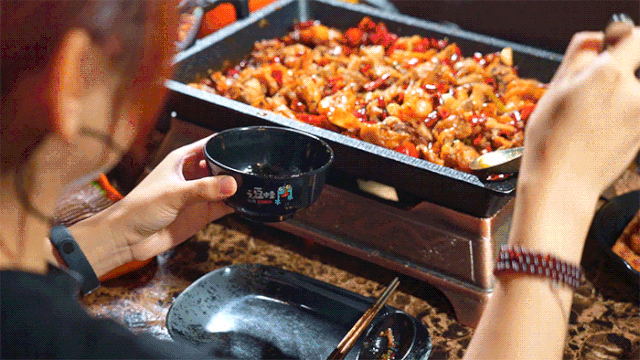 上桌后延续炭火慢煮,让汤汁渗透到每一寸肉里,分分钟刺激着你的味蕾。滑过油后的肉久煮不老,越煮越入味,连骨头都是香的。
