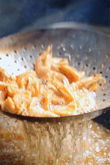 上锅前必须先“滑油”。所谓“滑油”,就是让食材在四五成热的油里“游泳”。目的是使食材保持细嫩的口感,同时去除多余水分,以免水分在烧制过程渗出。
