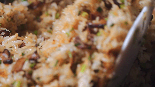 选用肉质较好的母鹅,鹅肉粒经过猛火爆炒透香之后再和香菇、七成熟的米饭烩焗,蓬松的米粒吸收了鹅香、酱香,香味十足,光是看见就让人垂涎三尺。