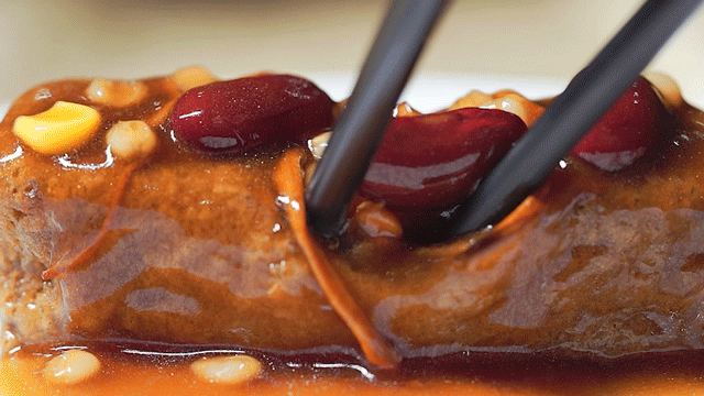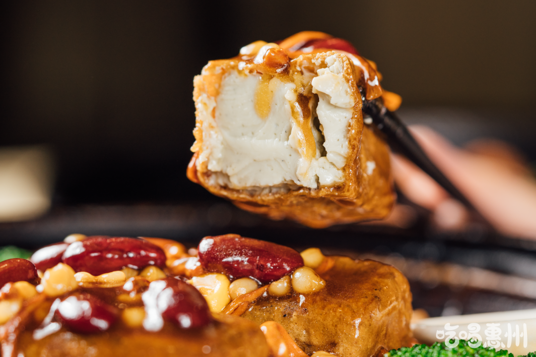 选用黑豆制成,外酥里嫩,一亿最喜欢它的表皮,搭配浓稠的酱汁,好吃到灵魂都在叫嚣。里面的黑豆腐滑溜溜的,怎一个嫩字了得!