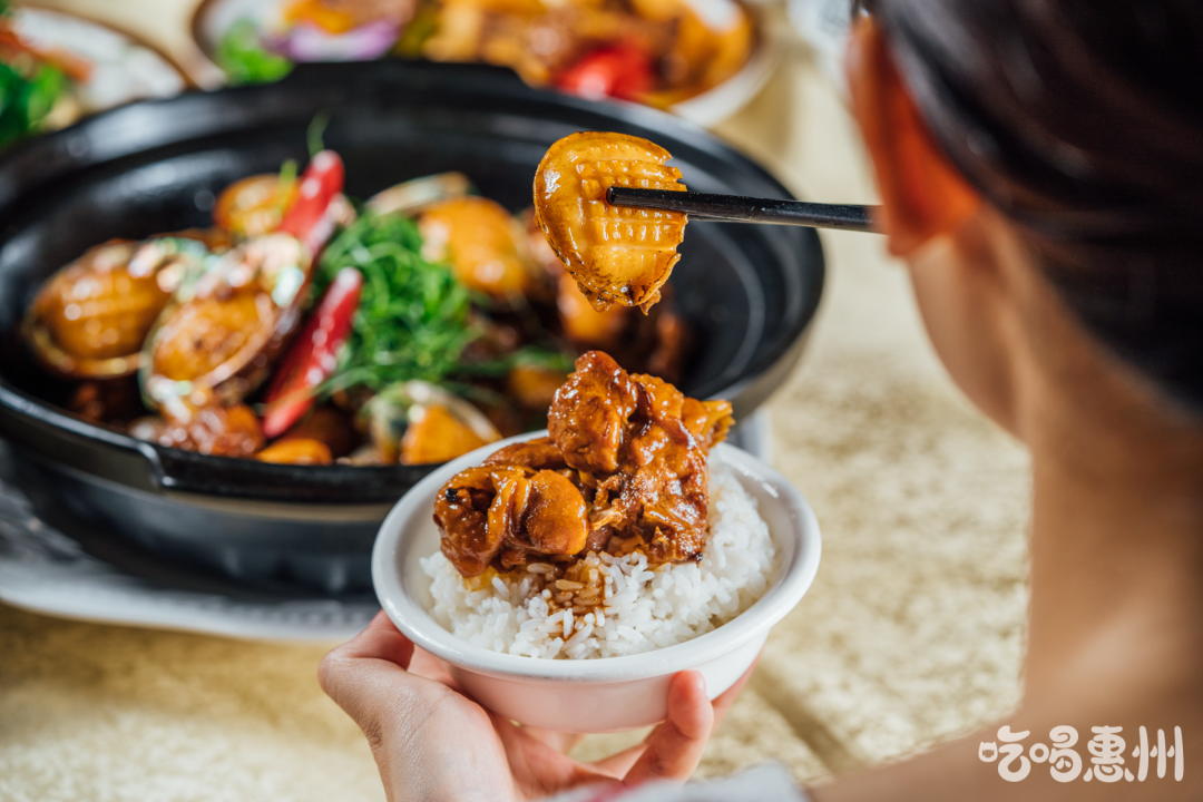 精选新鲜的“软黄金”鲍鱼,肉质爽滑弹牙,搭配专吃五谷杂粮的客家散养土鸡,一口鲍鱼一口鸡,再来一勺浇满酱汁的米饭,不知不觉已在长胖的路上越走越远。