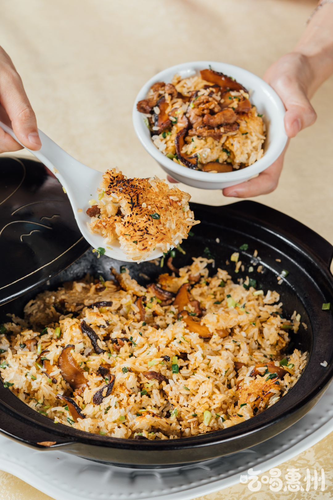 采用煲仔饭的做法,锅边还有一圈的锅巴,是鹅饭不可错过的美味。鹅肉、香菇再加上香脆的锅巴,光吃饭都能吃饱吃好,难怪那么多家长都带着孩子来这吃。