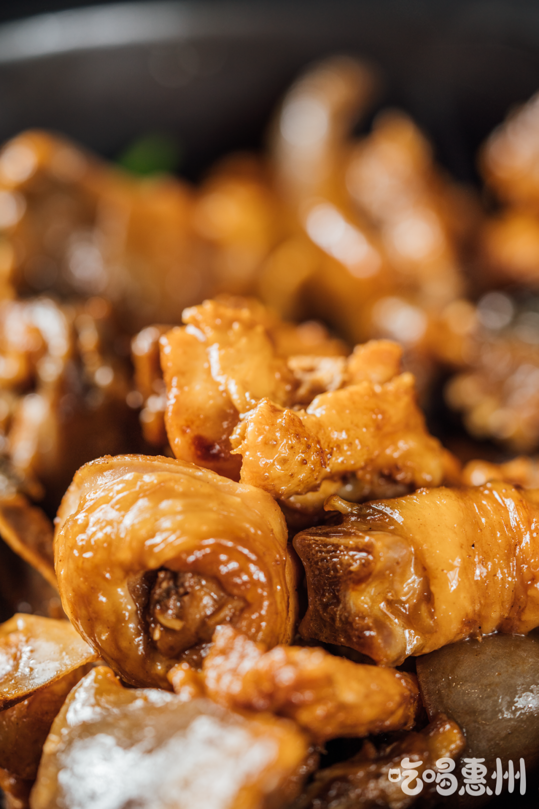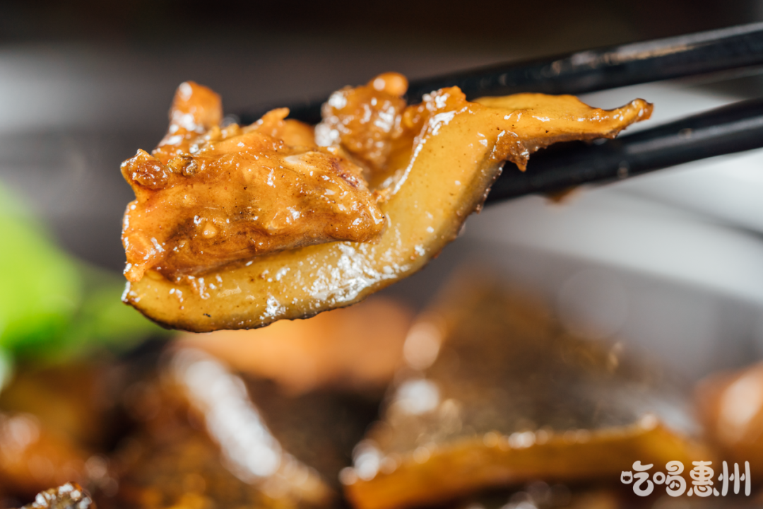 水鱼的皮充满了QQ弹弹的胶质,吃起来滑溜溜的、入口即化,是小朋友也爱吃的味道。而水鱼肉紧实饱满,裹满了酱汁就像鸡肉一样,不仔细看差点没看出来。