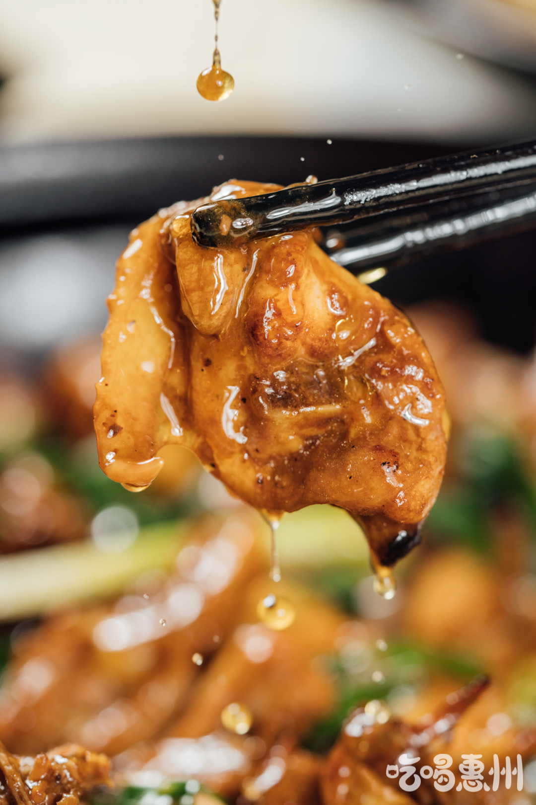 每一块鸡肉都被酱汁均匀的包裹着,表层油光闪亮,肉质细腻紧致。一亿小提示,先从锅底的鸡肉开始吃,带着点焦焦的味道,就着它吃两碗饭都不在话下。