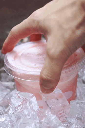 晶莹剔透、色泽鲜艳的草莓泡在梳打水中,与冰块的碰撞。满眼清爽,消灭暑气,直达心底~