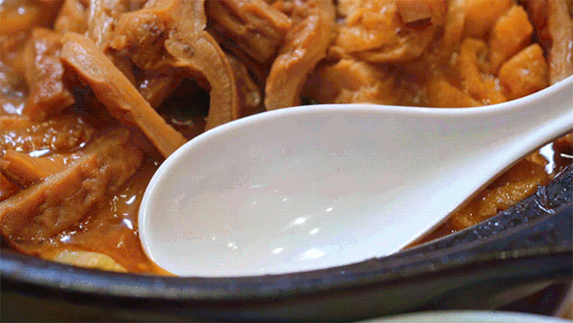 牛杂吃得差不多的时候,汤也煮得足够浓郁。这个时候为自己舀上一勺牛杂汤,在米饭中拌开,朴实无华却口感极佳,绝了!58元/煲,两人分享,性价比妥妥的~