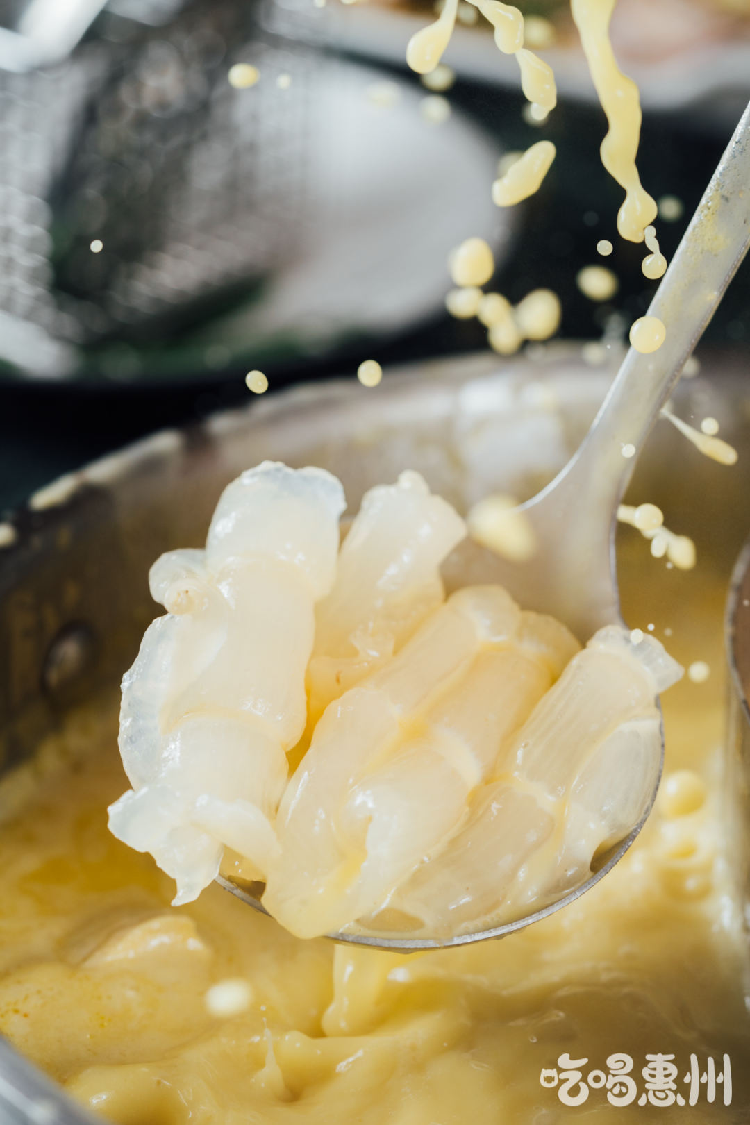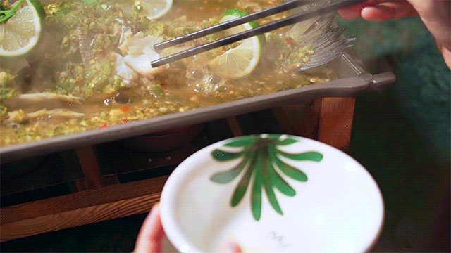 晶莹剔透的鱼肉,被片得非常薄,煮过之后还弹力十足,脆不绝口,吃了果然让人忍不住举起大拇指点个赞。