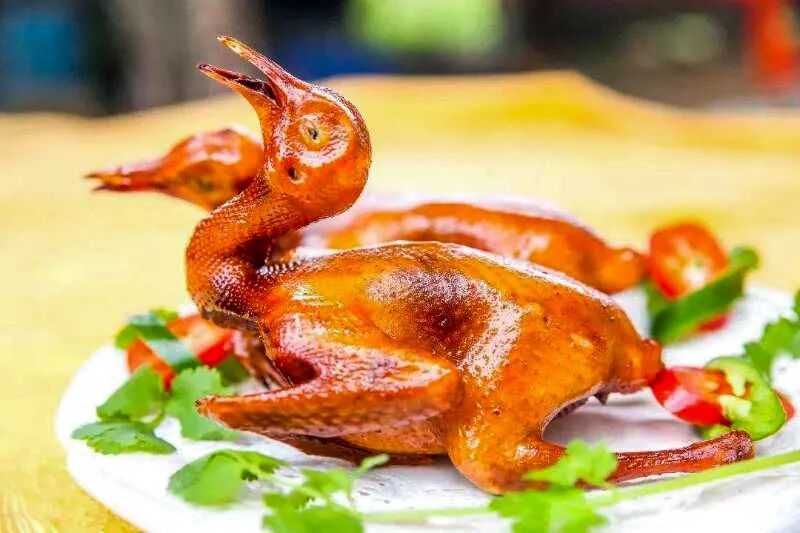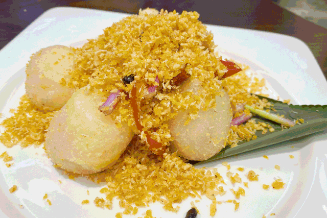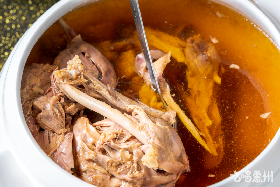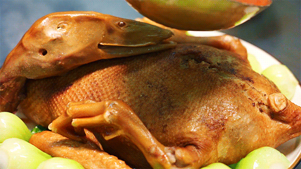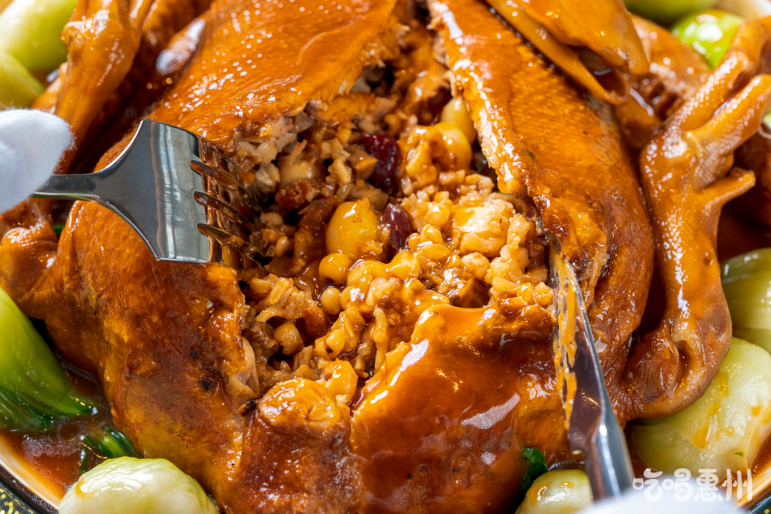这道菜需要较高的技艺来去除鸭骨并保留完整原形,我们当场感叹师傅精湛的刀功。鸭肉酥软嫩滑,馅料香浓软糯,沾上汤汁后味感丰富。好有满足感!