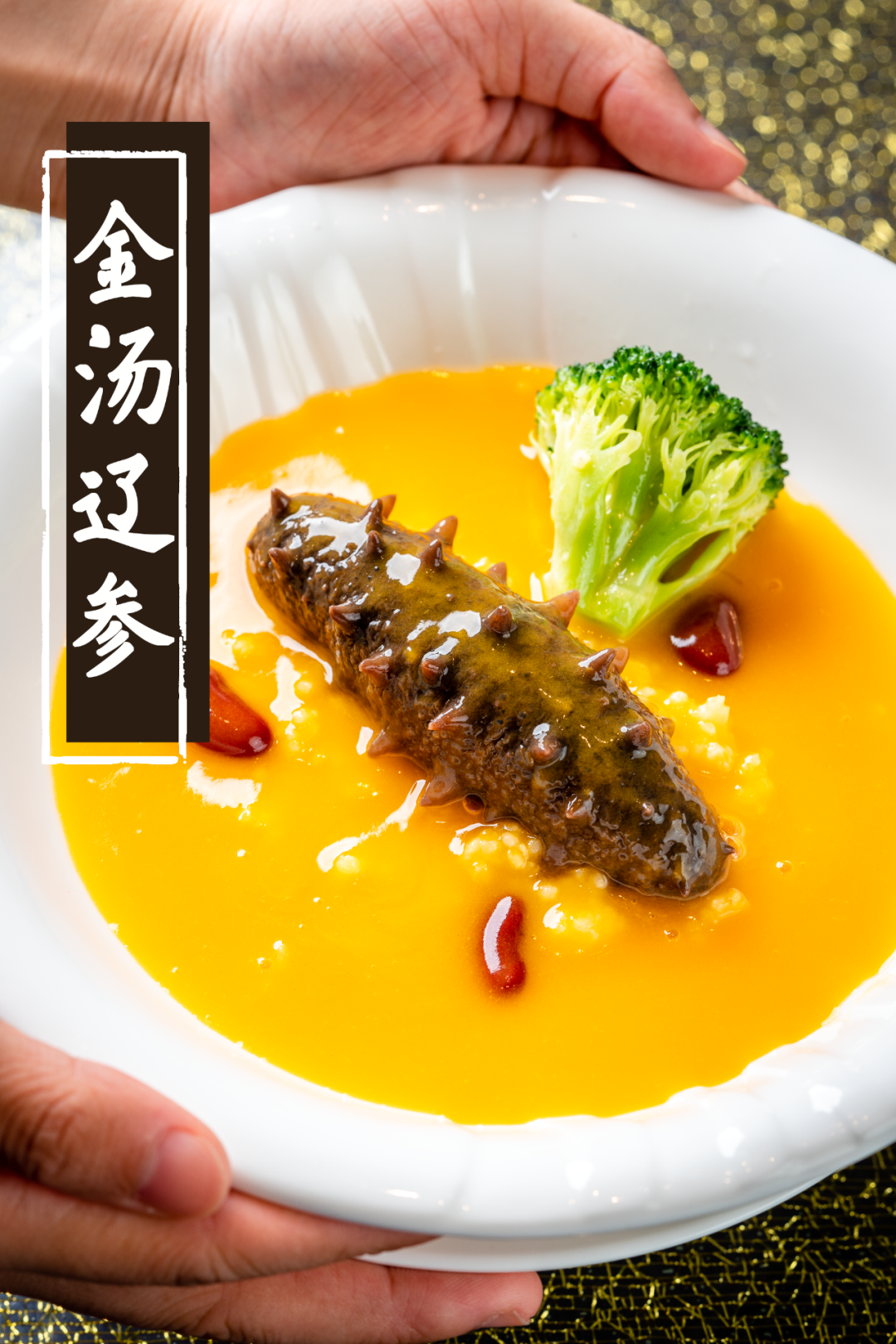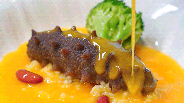 发制好的精选辽参配以金汤小米,按位上分量刚刚好。营养丰富、口感爽滑,老少皆宜。