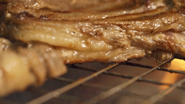 放上烤炉翻转的过程中,扑鼻的香气更甚,定力稍微不足的人看到了,口水是忍不住的。正在码字的我好似感受到了它略带微焦的香味,啊,又想它了!