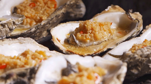 芝士生蚝是店里的招牌之一,厚厚一层的芝士铺盖在生蚝上面,遮掩得一丝密缝都不留,芝士重度患者光是看到它就忍不了了!