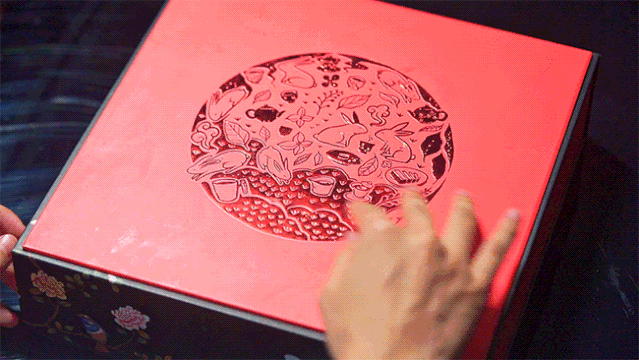今年月饼的礼盒设计让人看了忍不住“脸红”,满屏的红色尽显中秋喜庆的氛围,搭配烫金的印花和国潮风格的黑色契合品牌主题色,充满了高贵和神秘。