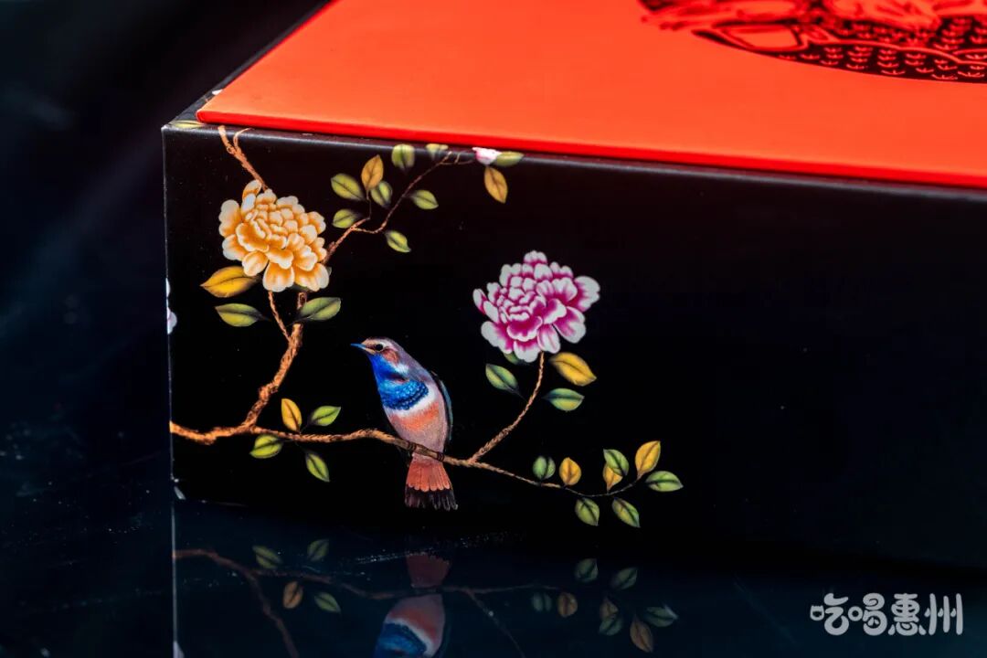 礼盒各处小细节都充满了惊喜,精致的礼盒上印上的月圆图案,藏着多只可爱的小兔子,侧面中国风的花枝鸟插画,给人一种复古国潮的感觉。