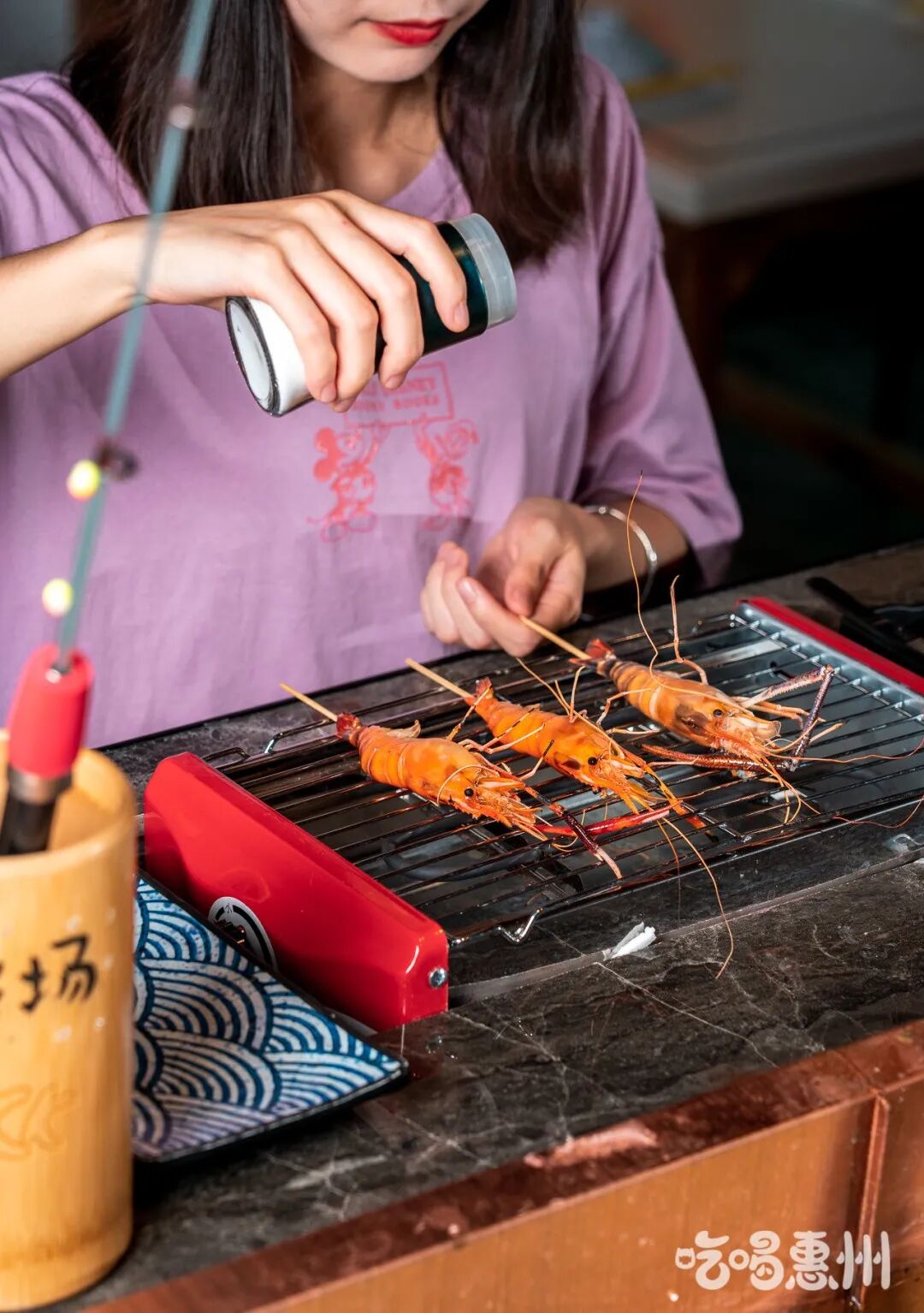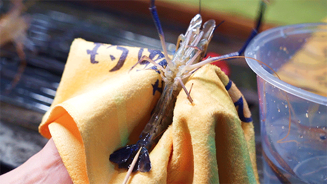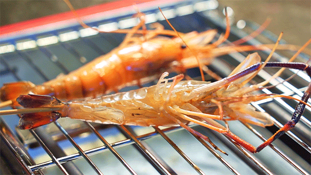 虾被钓上来后,即可放到配备好的烤炉上烤,只底下一个开关键,操作简单。烤炉开了之后温度升得很快,烤虾的时候要小心别被烫到啦~