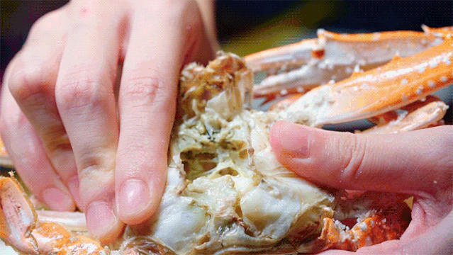 将螃蟹从厚厚一层盐晶里捞出来,掰开时盐巴向四周迸发,像极了偶像剧里的雪花。蟹肉带着微咸,但鲜味并没有被掩盖,爱吃螃蟹的我给它五颗星!