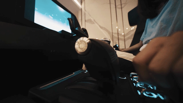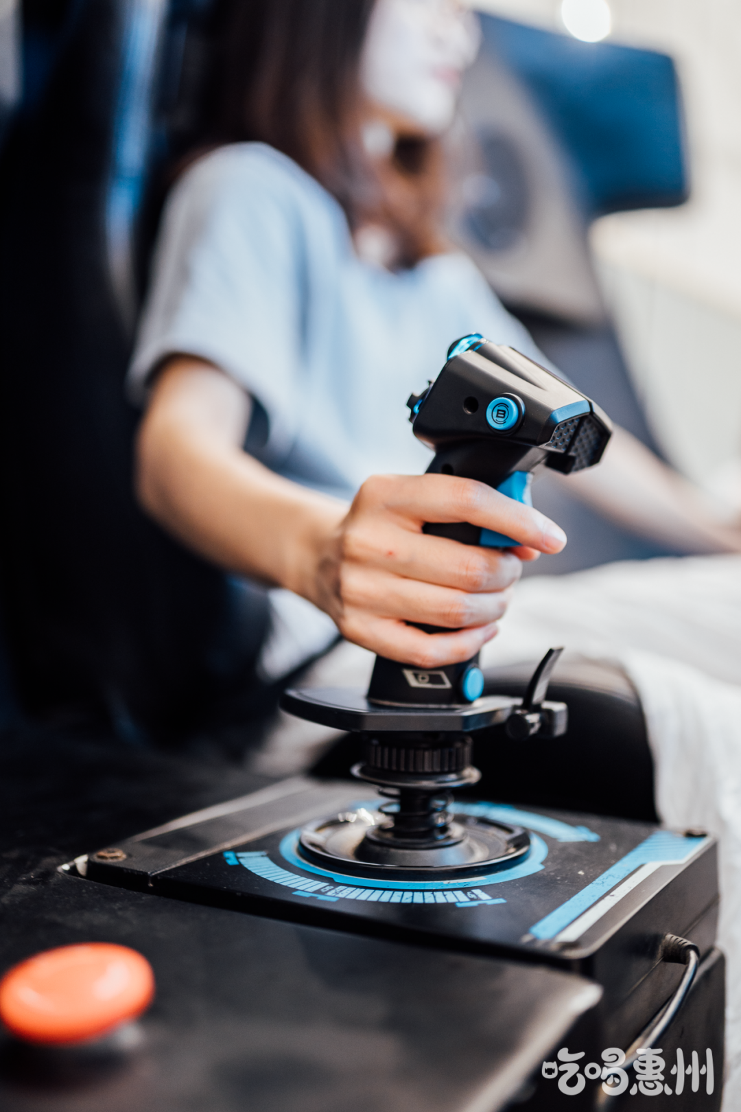 视线专注前方飞行画面,自行控制飞行速度和方向。模拟机舱会随着操控360度摇摆,让人身临其境~代入感太强了,我已经“冲上云霄”了。