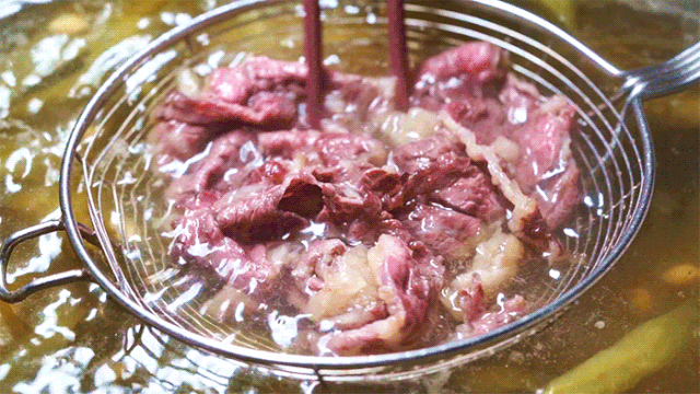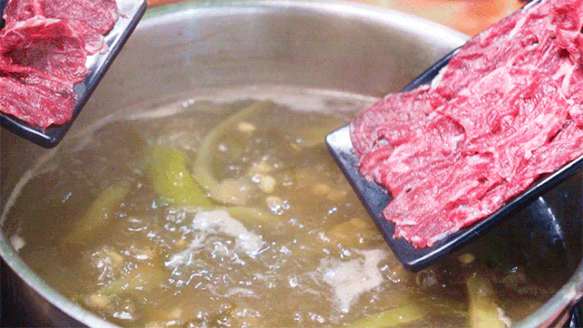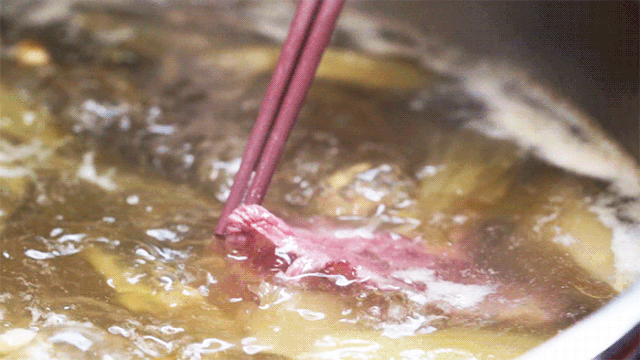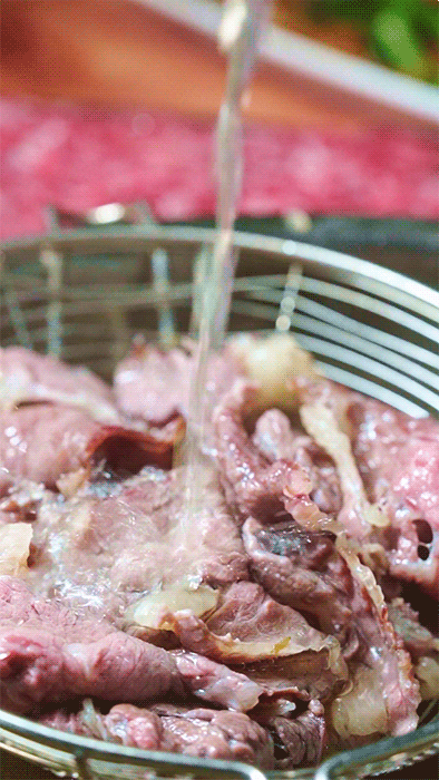 涮菜之前,不要忘记给自己舀上一碗汤。牛肉的精华全部融在汤里,一碗下肚,畅快解腻!
