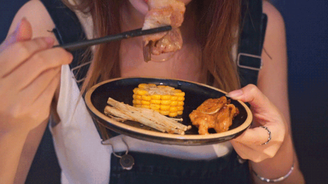 肥牛是店里的人气款了,手一慢就抢不到,只能等下一盘啦。烤完刚刚够熟就迫不及待开吃了,入口即为巅峰时刻,吃起来口感油润又有韧劲。
