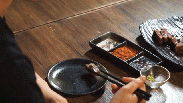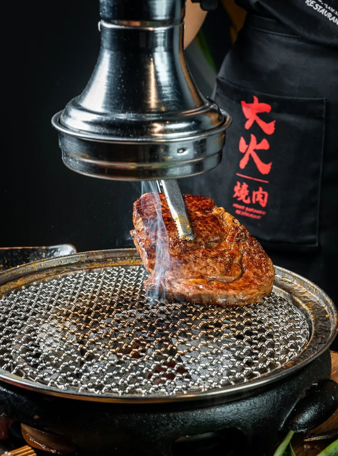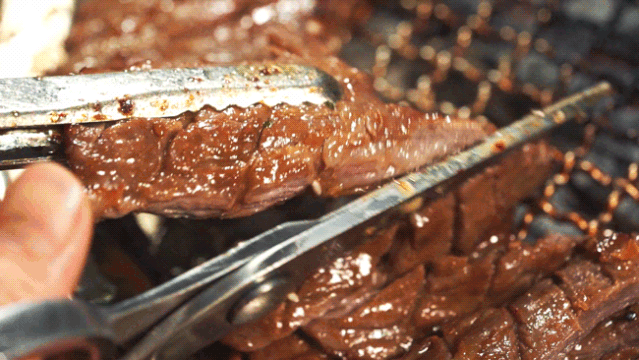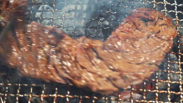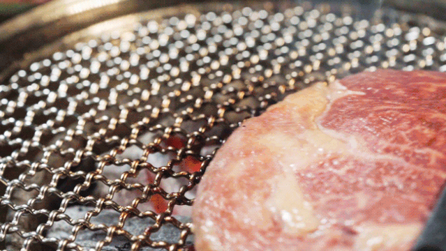 而日式烧肉,则是将大部分未腌制的肉放置在网状的铁丝或铸铁板条上烧烤,肉可以接触到明火,所以这对肉质食材的选料要求特别高。