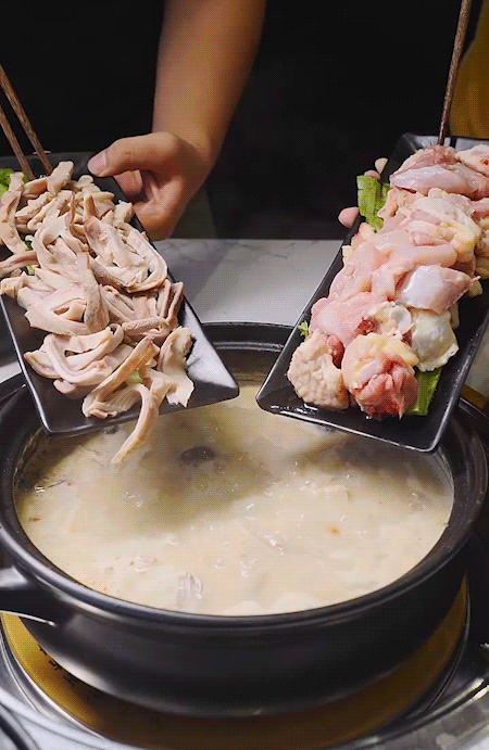 果园鸡够嫩,下锅5~8分钟就可以开吃!有了猪肚汤的加持,肉质也变得更加鲜甜!入嘴胡椒味儿还hin浓!