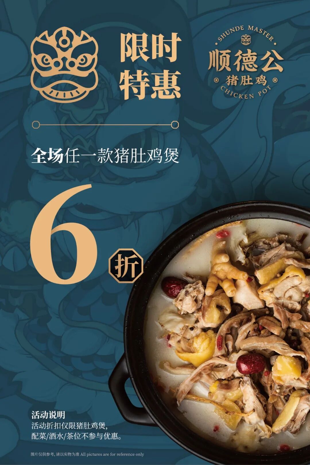 顺德公,凭借一锅滋补骄人的猪肚鸡煲脱颖而出。每一份匠心食材,宗师原则才是道。这样的猪肚鸡再加上6折吃!谁不爱?