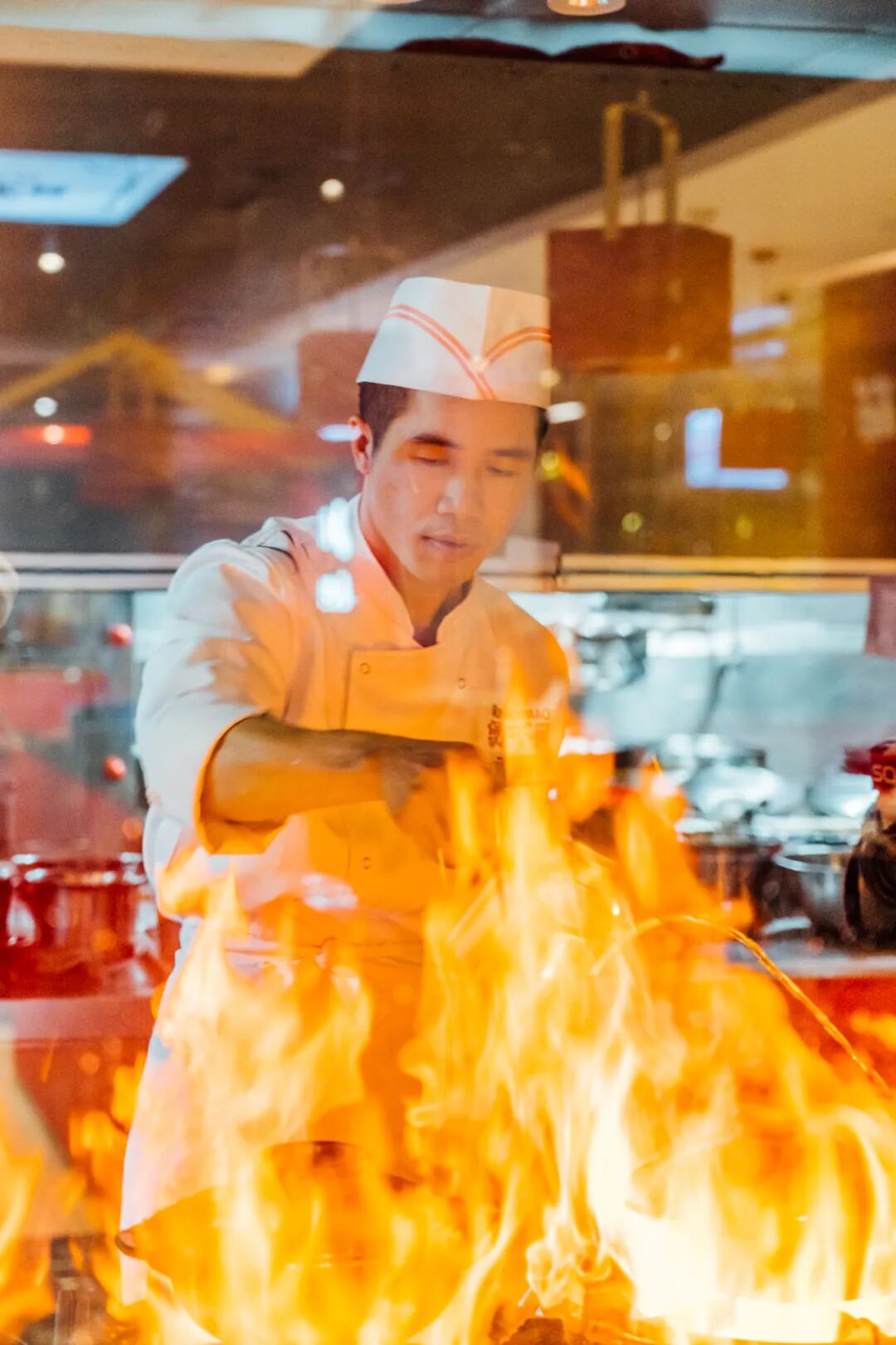 隔着透明玻璃,就可以看见店里的数十位掌勺师傅,全透明开放式厨房的工作环境,吃的十分放心~