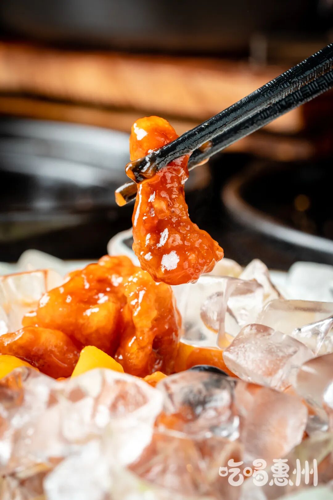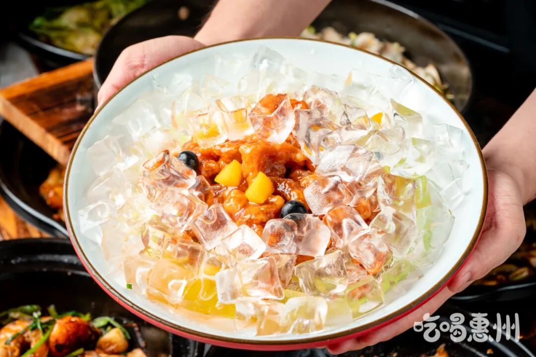 把咕噜肉藏进冰块里,是粤菜里头的新派做法,原本的绵软咕噜肉在冰块的神奇作用下,外面清爽松脆,而内部却依然又热又软。原价58元,现在半价29元就可以开吃啦~