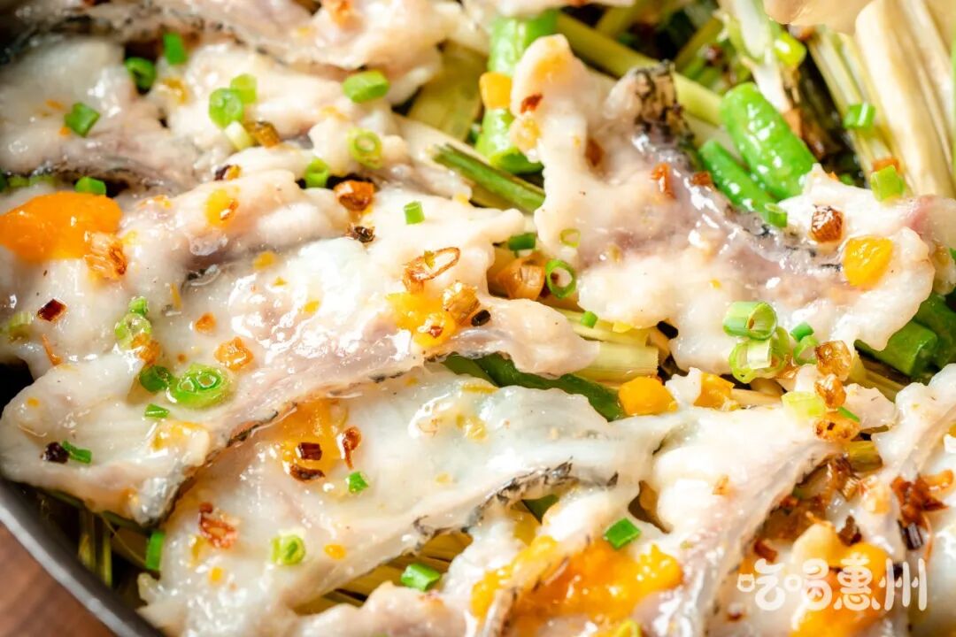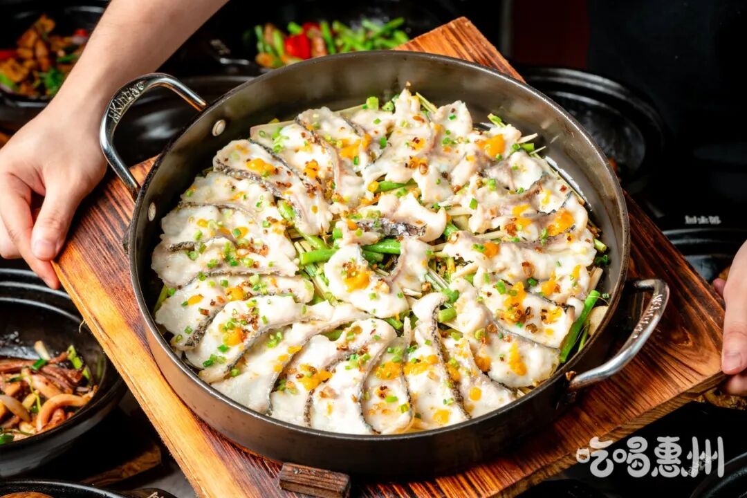 和啫啫煲不同的是,鱼片鲜而嫩滑,每一片都亮中带透,十分美观。